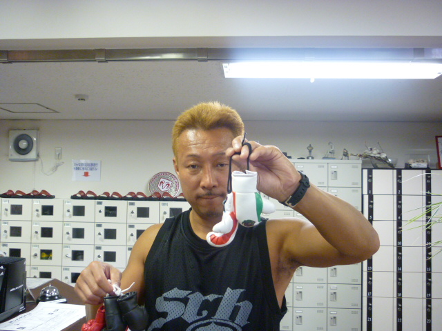会長が右手に持っている 黒グローブと赤グローブは 各1,500円☆