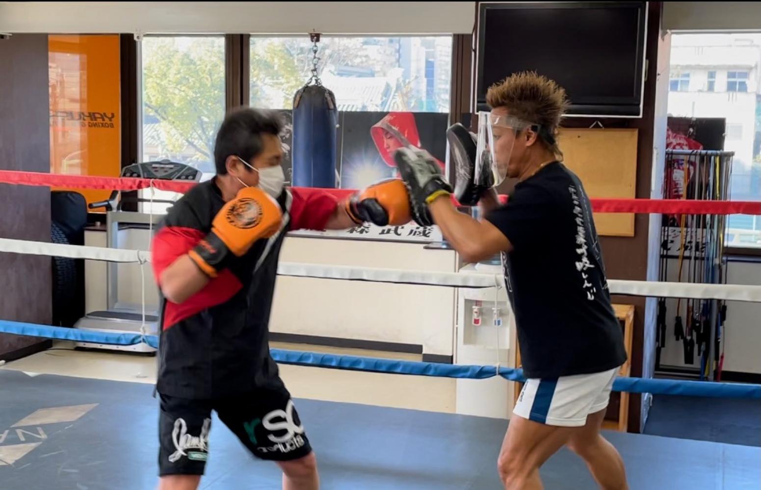 会長もミット打ちの時には必ずフェイスガード!!