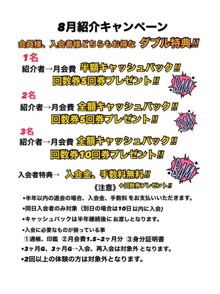 8月のキャンペンは紹介キャンペーン!!