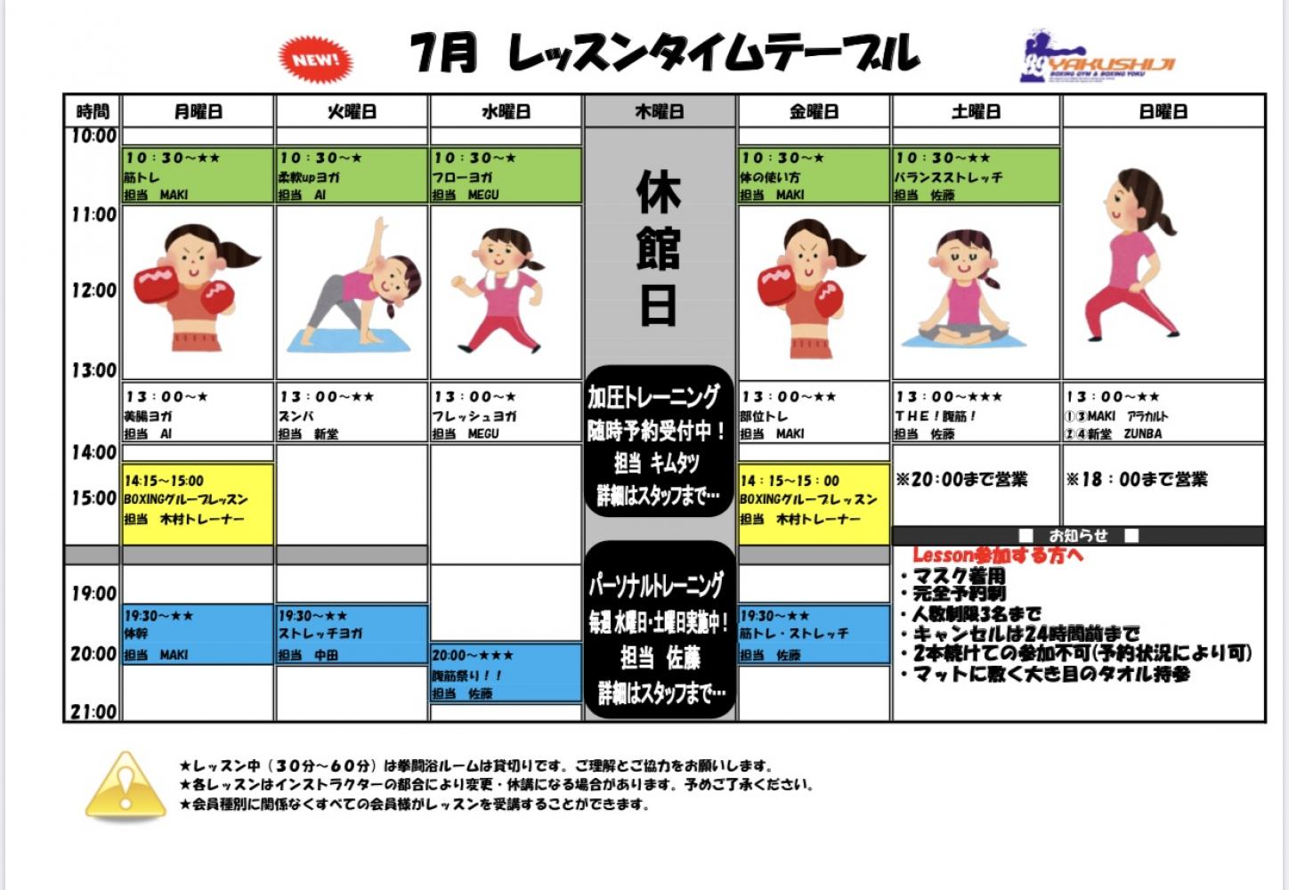コロナウイルス対策でお休みさせて頂いておりました朝のレッスンを7月13日より再開します!!