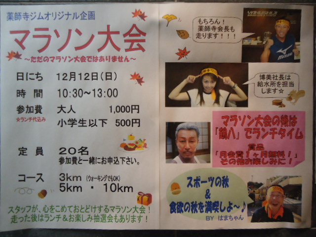 12/12(日) 薬師寺ジムオリジナル企画 『マラソン大会』が行われます!!